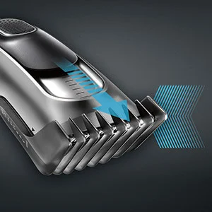 - 17Längeneinstellungen: 2 smarte Trimmaufsätze ermöglichen die individuelle Gestaltung einer Vielfalt von Frisurstilen in bis zu 16Längen. Darüber hinaus profitieren Sie von einer besonders kurzen Längeneinstellung, wenn kein Kammaufsatz genutzt wird