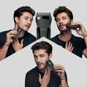 Die druckempfindlichen Klingen rasieren sanft und erreichen selbst die kleinsten Bereiche. Der Barttrimmer-Aufsatz trimmt 3-Tage-Bärte und Konturen präzise. Intuitiv. Nützlich. Langlebig.